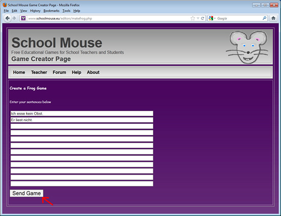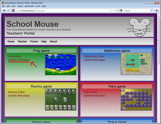 We will do a 'Frogs' game, as it is the easiest, and we will also go for the 'simple' web-page version of the editor.