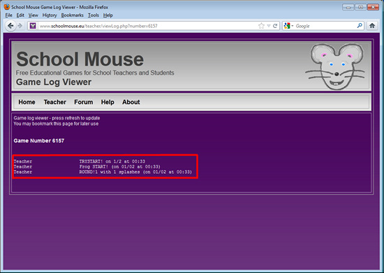 You can now go back to your page with the game number on it, and your screen gets updated with how they are doing so far.
